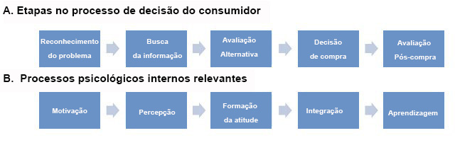 O seguinte modelo básico de consumo criado por George Belch e Michael Belch, demonstra claramente como é o processo de compra de um consumidor. Saber o que quer, o que precisa e como pensa, te ajudará a saber criar uma estratégia de comunicação eficaz para influenciar e alcançar a meta dourada: vender.