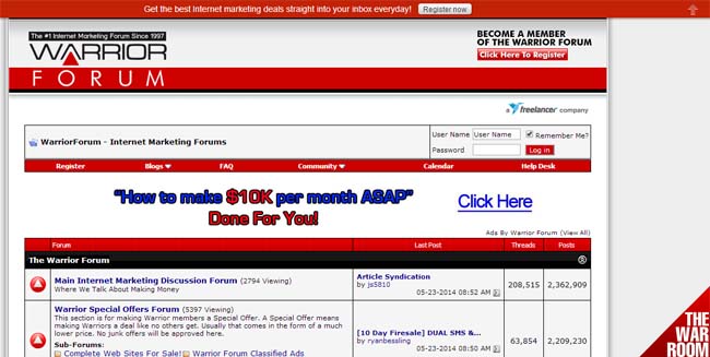 Um excelente exemplo para começar é: Warrior Fórum. A maior e mais antiga comunidade relacionada ao mundo do marketing. Existe desde 1997, e souberam monetizar o fórum tão bem, que ele obtém mensalmente valores que superam vários MILHÕES de dólares. Wow, souberam fazer bem as coisas, não?!