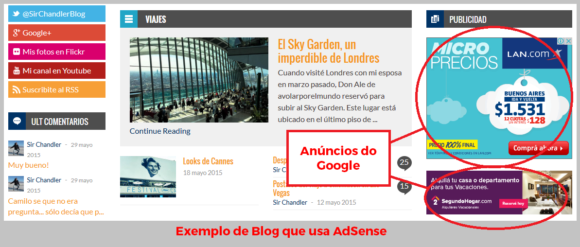 Na imagem abaixo, você pode ver um exemplo de como é a aparência de um blog que usa AdSense.