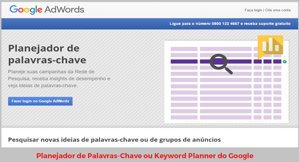 2. Controle o volume de buscas de cada keyword: o objetivo é descobrir quais são as keywords mais procuradas, na lista do ponto anterior, e usá-las nos seus artigos. Para isso, você pode usar o Google Keyword Planner, uma ferramenta gratuita do Google Adwords.