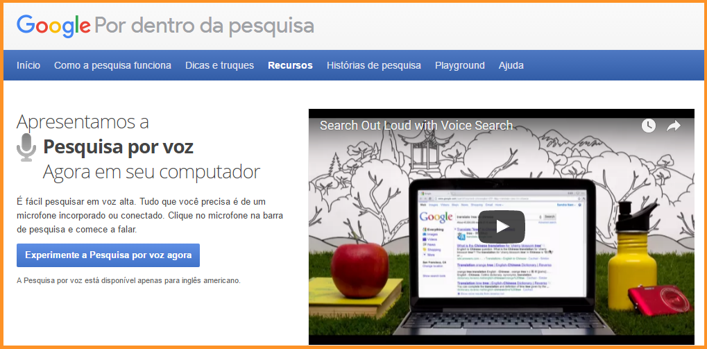 Isso é tão verdade que o Google também oferece a possibilidade de fazer uma busca por voz a partir do computador.