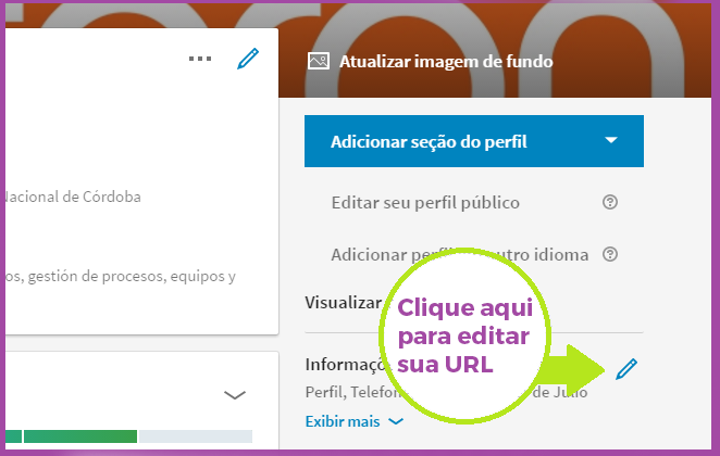 Para que seu perfil no LinkedIn pareça (e seja) realmente profissional, o melhor que você pode fazer é personalizar a URL do seu perfil da seguinte forma:: http://linkedin.com/nome-e-sobrenome. Fazer isso não só deixa seu perfil mais limpo e com uma estética mais corporativa como também facilita que as pessoas possam lhe encontrar rapidamente.