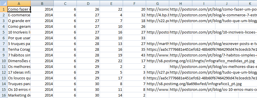 Esta funcionalidade também é muito utilizada por donos de blogs e sites que publicam grande quantidade de conteúdo. Quando você publica mais de 6 publicações por dia em multiplas redes sociais, e está criando o seu calendário semanal, é mais fácil montar uma planilha com todos os posts que você vai publicar e fazer upload no Postcron, do que fazer upload dos posts individualmente.