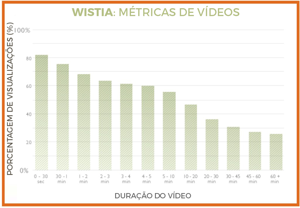 Outra particularidade: os vídeos no Twitter devem ter uma duração máxima de 2 minutos e 20 segundos. E se você acha que é pouco tempo, veja este gráfico elaborado pela Wistia, que mostra precisamente que os vídeos curtos funcionam melhor: