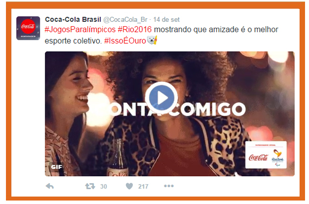 A Coca-Cola Brasil, por exemplo, aproveitou o momento dos Jogos Paralímpicos pra criar tweets relacionados. Uma ação tão simples como esta pode lhe ajudar a melhorar o engagement e fazer que seu tweet se torne viral.