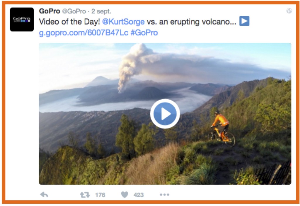 Você também pode fazer como a GoPro, que compartilha imagens e vídeos criados pelos seus seguidores e marcá-los nas postagens. Isso vai estimular o seu público a continuar compartilhando conteúdos onde citam a marca, o que gera mais engagement:
