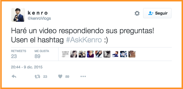 O youtuber clássico Kenro (em espanhol) é um dos muitos usuários do Twitter que aproveita este recurso: